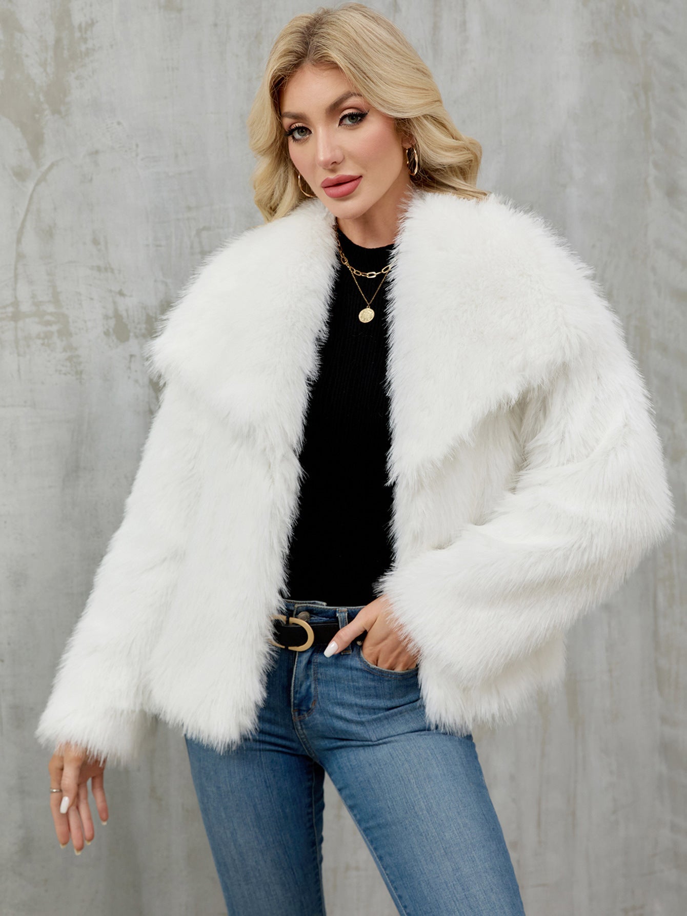- Wärme und Komfort: Der weiche, flauschige Kunstpelz hält Sie warm und fühlt sich angenehm auf der Haut an, perfekt für einen gemütlichen Tag oder einen glamourösen Abend.