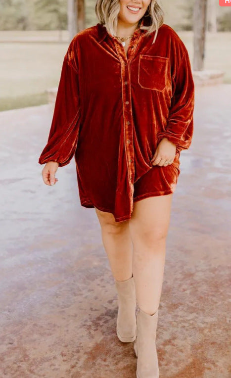 Erleben Sie mit unserem Velours Hemdkleid ein neues Level an Eleganz und Komfort. Kaufen Sie jetzt und entdecken Sie, warum es zu Ihren Lieblingskleidern gehören wird!