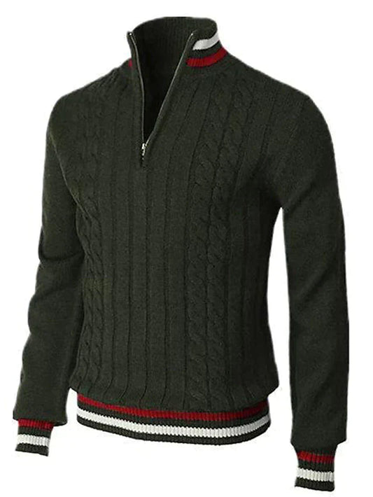 Herren Pullover Zopf Muster Reißverschluss
